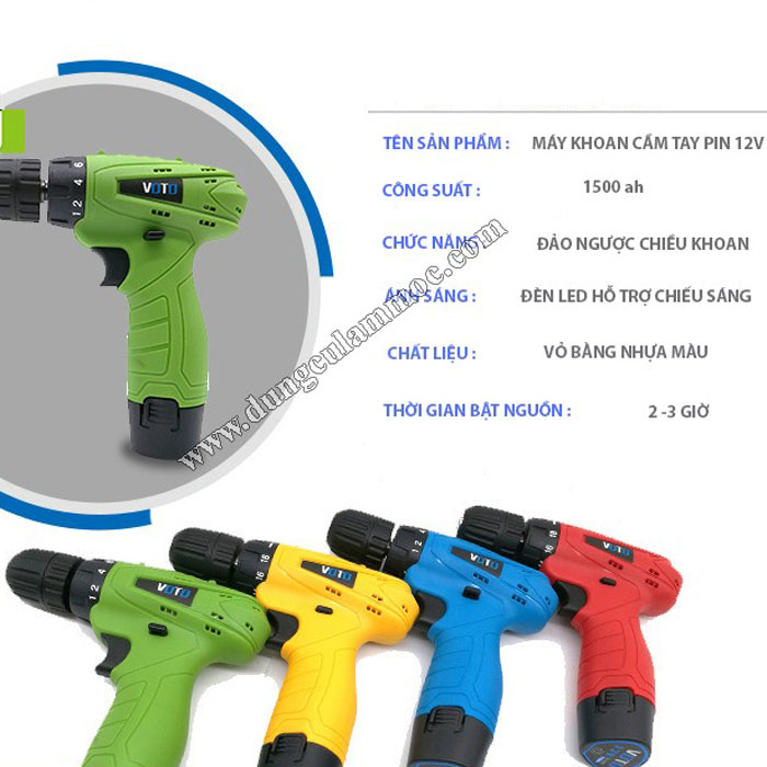 Thông số kỹ thuật máy khoan pin Voto 12V